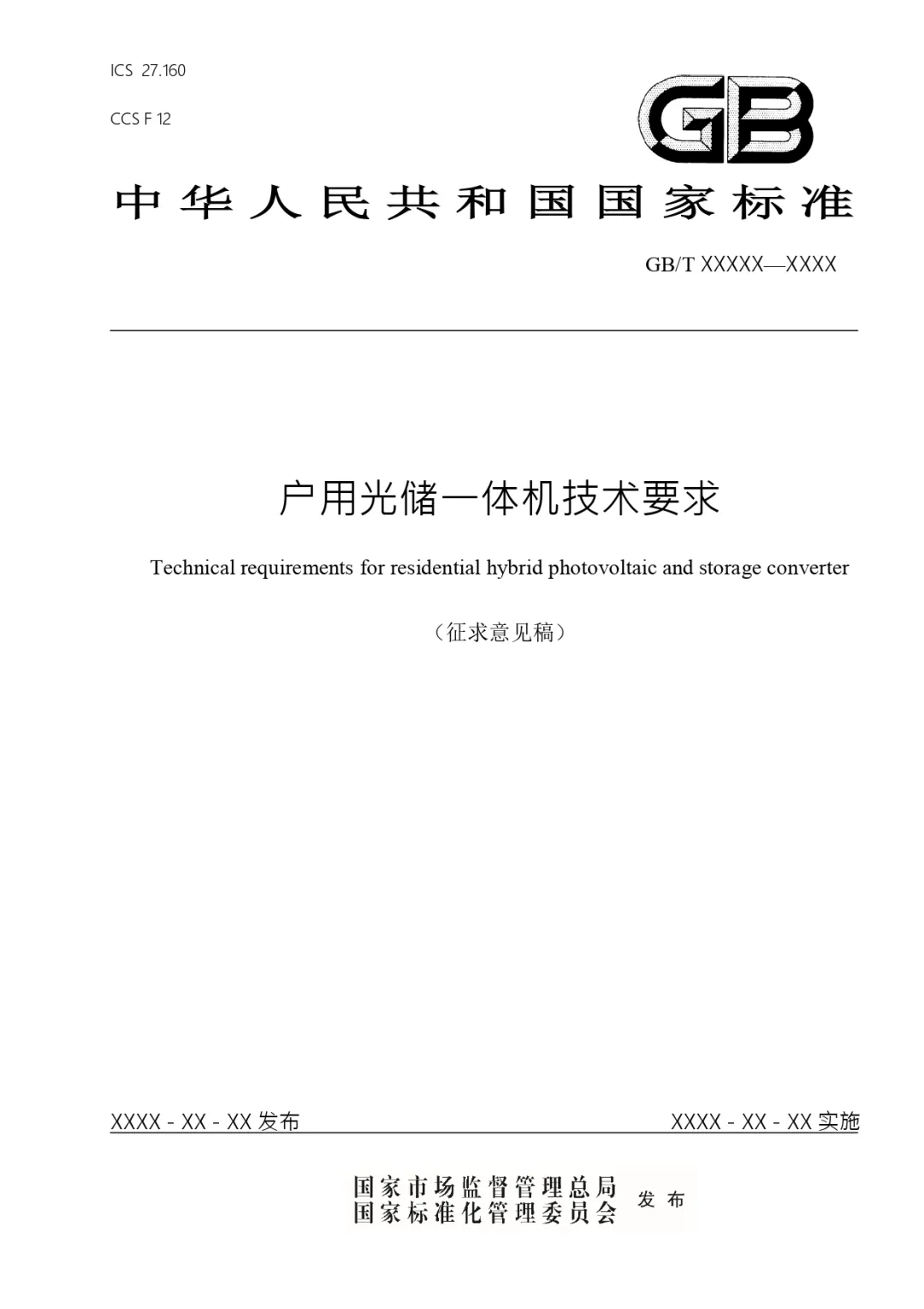 国家标准《户用光储一体机技术要求》征意见!