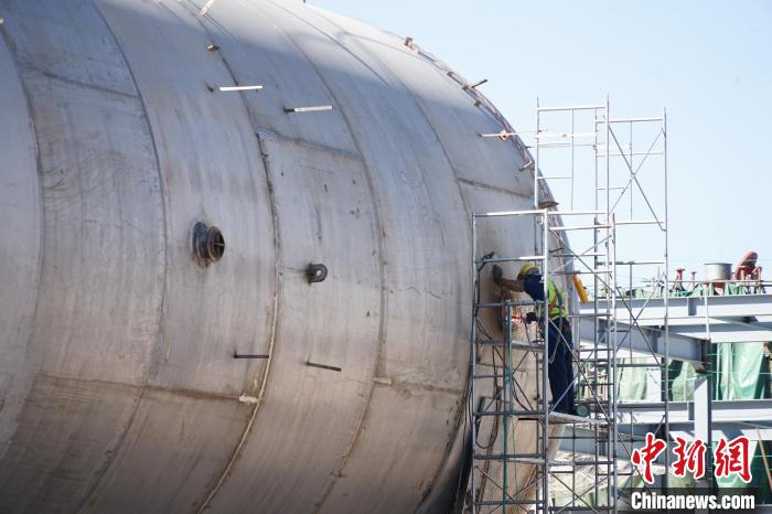图为工人在世界最大规模液态空气储能项目现场施工。