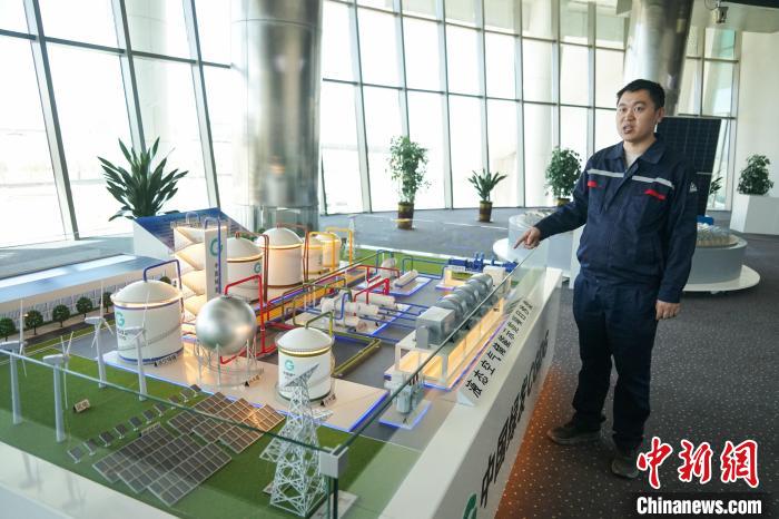 图为中绿中科储能技术有限公司研发设计部主任刘纪云介绍项目工艺流程。
