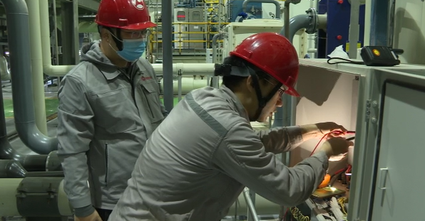 项目现场一个个巨大的储能罐整齐矗立,由一排排管道串联为一个整体,将储罐中的能源输送到各个需要的地方。工人们穿梭于复杂的设备之间,以高度负责的态度,认真做好每道工序、每个环节,为项目试运行成功做最后的调试。