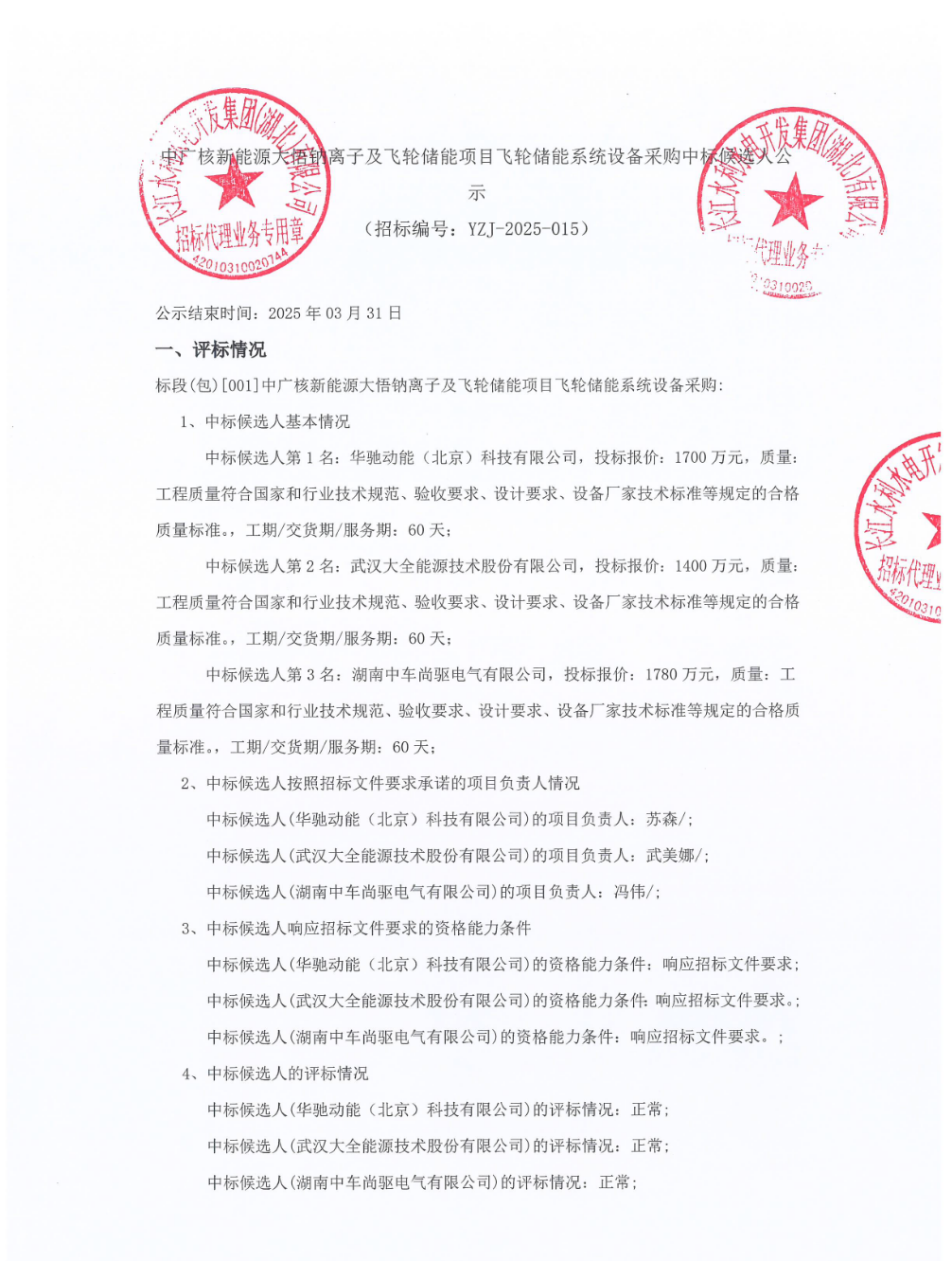 3月26日,中广核新能源大悟钠离子及飞轮储能项目飞轮储能系统设备采购中标候选人公示。