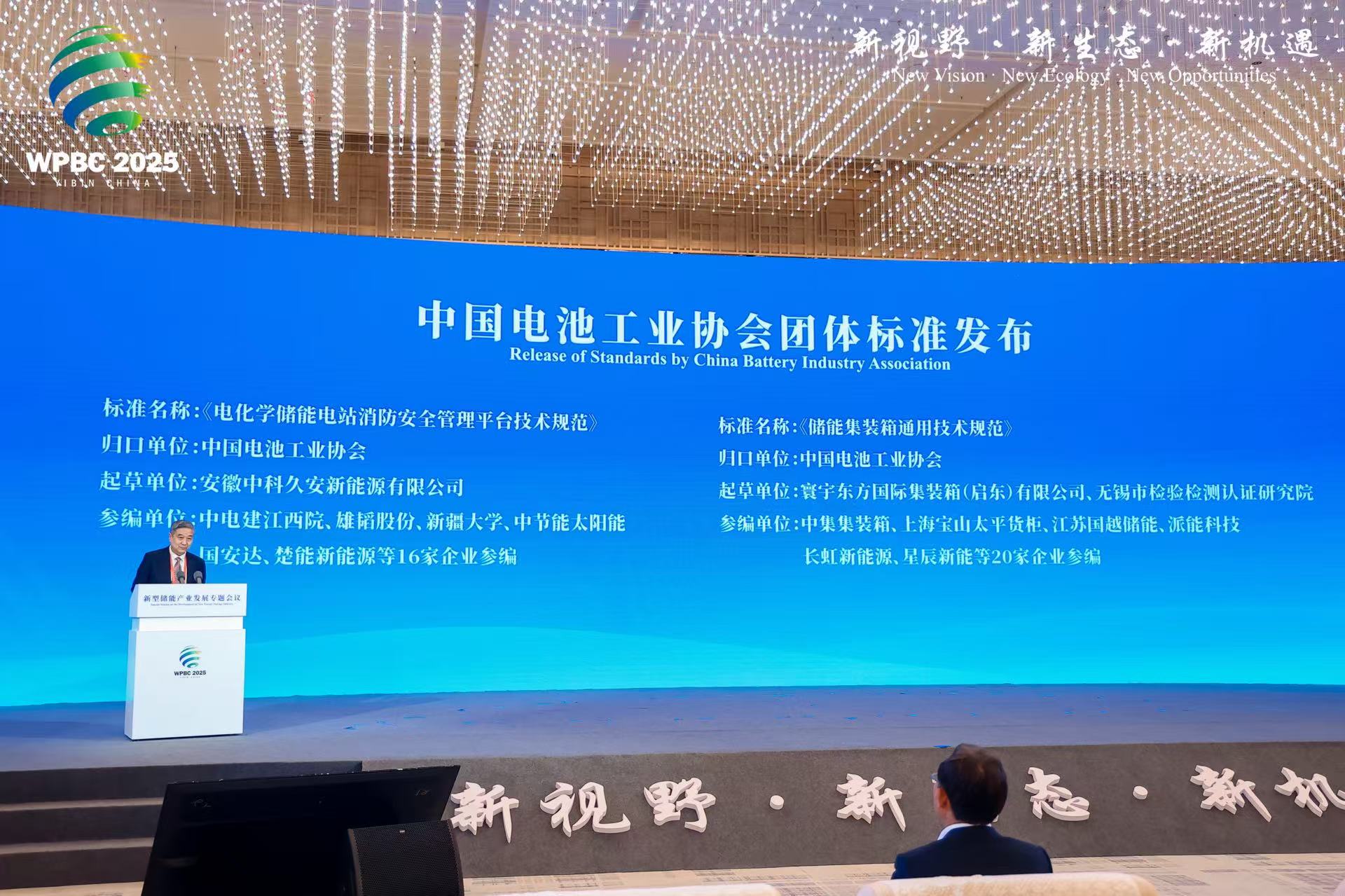 在标准发布环节,中国电池工业协会《电化学储能电站消防安全管理平台技术规范》、《储能集装箱通用技术规范》两项团体标准在会上举行了发布仪式。
