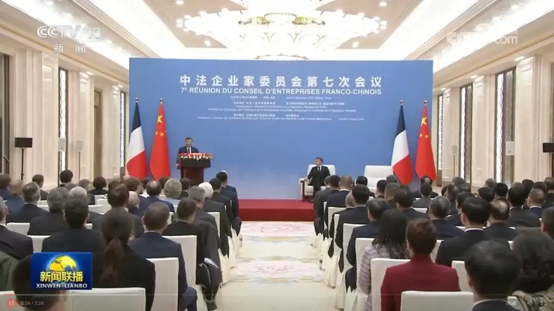 12月4日,国家主席习近平同法国总统马克龙在北京共同出席中法企业家委员会第七次会议闭幕式并致辞。