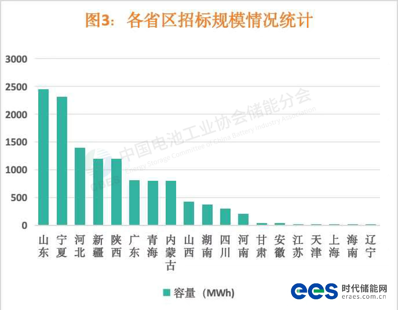 按地域招标容量规模分析,TOP5分别是:山东2488MWh,宁夏2320MWh,河北1400MWh,新疆、陕西1200MWh并列第四、广东814.7MWh。其中,山东含中星九州枣庄山亭200MW/1200MWh先进压缩空气储能工程总承包项目。安徽、江苏、天津、上海、海南招标规模较小,以用户侧储能为主。