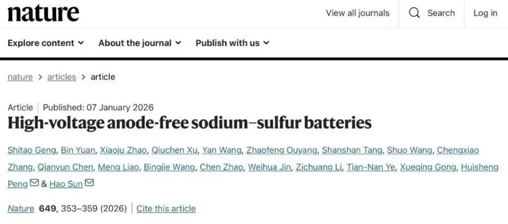近日,上海交通大学变革性分子前沿科学中心孙浩副教授团队在新型储能技术领域取得关键进展。研究团队提出了一种高电压、无负极的钠硫电池体系,有望突破传统钠硫电池在放电电压和安全性方面的瓶颈,为发展下一代大规模储能技术开辟全新路径。相关成果于1月8日发表在国际学术期刊《自然》上。