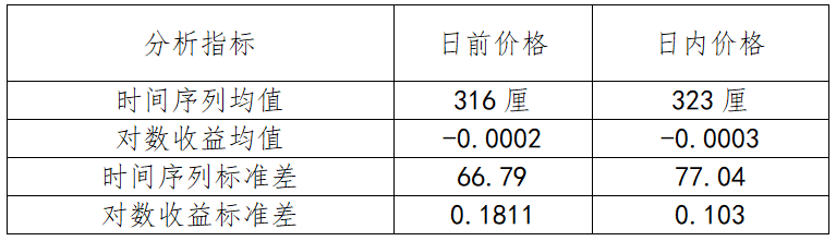 表1 日前价格和日内价格基本指标统计