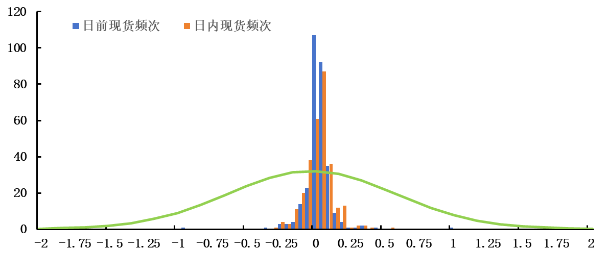 图1-3 广东电力现货市场价格对数波动直方图