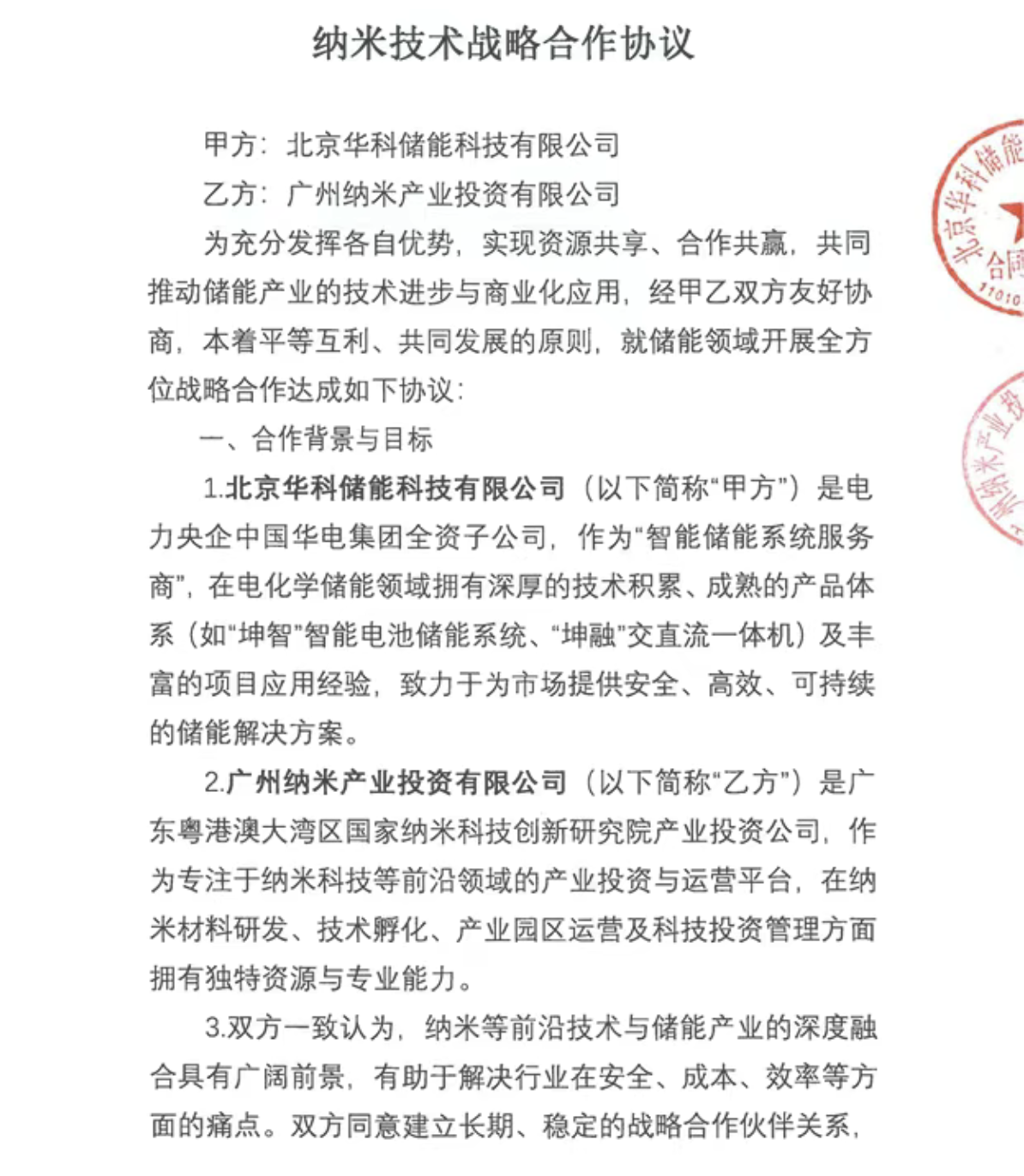 近日,北京华科储能科技有限公司与广州纳米产业投资有限公司签署纳米技术战略合作协议。