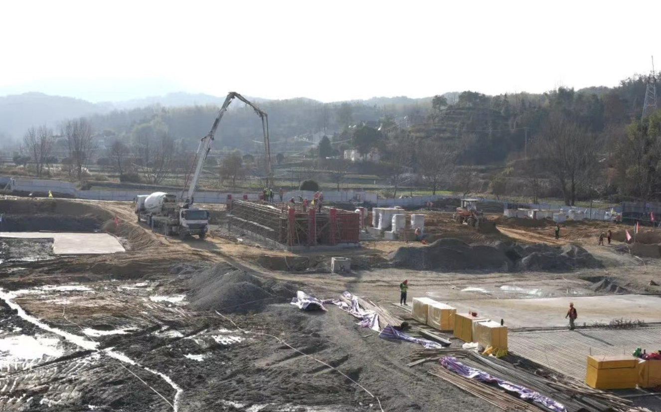 项目于2025年10月开工建设。目前,东侧升压储能区主变压器、GIS设备已安装完成,13座铁塔全部建成,8个储能电池仓底座已浇筑完毕,即将实现首批并网发电。2026年3月将启动西侧34个储能电池仓建设,预计6月实现全容量并网。