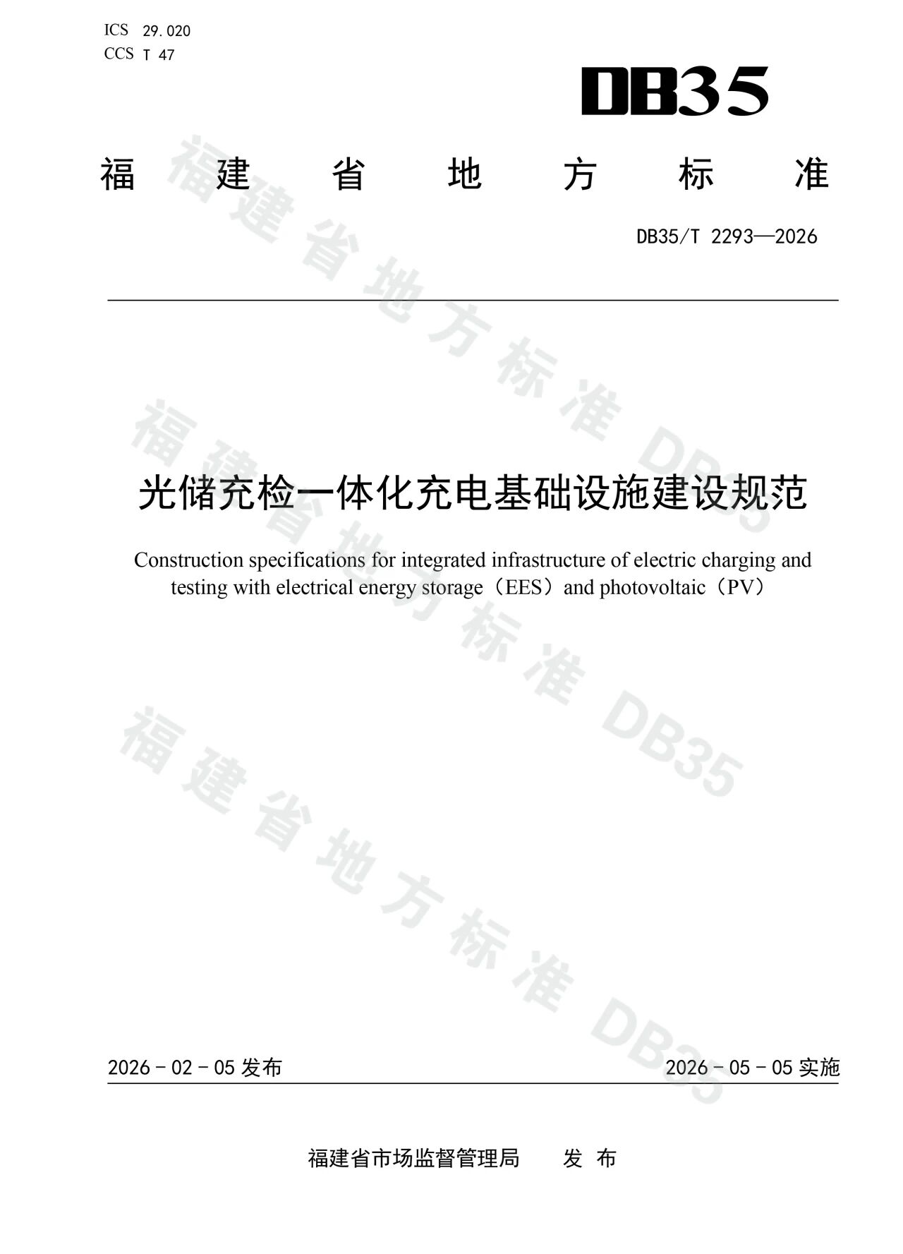 近日,由福建星云电子股份有限公司(简称:星云股份)主导制定的福建省地方标准——《光储充检一体化充电基础设施建设规范》(DB35/T 2293-2026 简称:《规范》)正式发布,并将于2026年5月5日起实施。这一省级地方新标准的落地,不仅填补了相关领域的技术规范空白,更标志着福建省在引领全国光储充检一体化充电基础设施建设中树立起一座崭新的里程碑。
