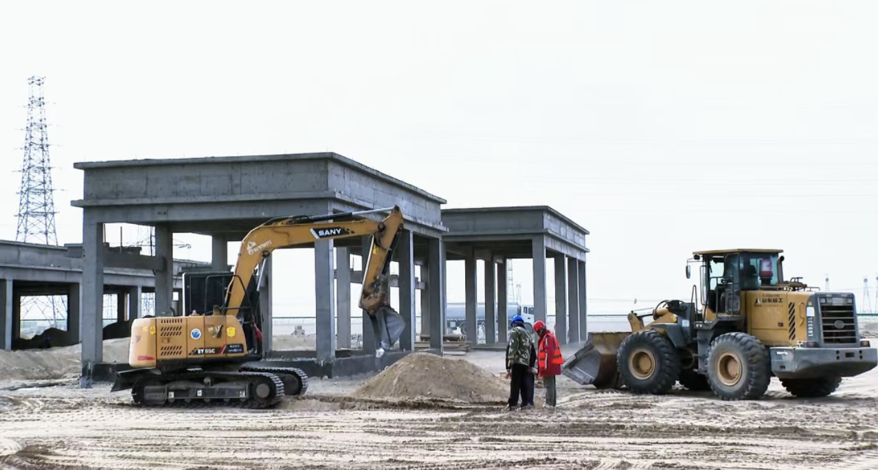 来到敦煌市光电产业园国晟南都独立储能示范项目建设现场,只见一片繁忙景象,机械的轰鸣声此起彼伏,各类工程车辆往来穿梭,施工人员有序进行电池舱基础钢支架就位、电缆沟模板安装等作业。各工序紧密衔接,现场秩序井井有条,展现出“复工即决战、起步即冲刺”的昂扬姿态。