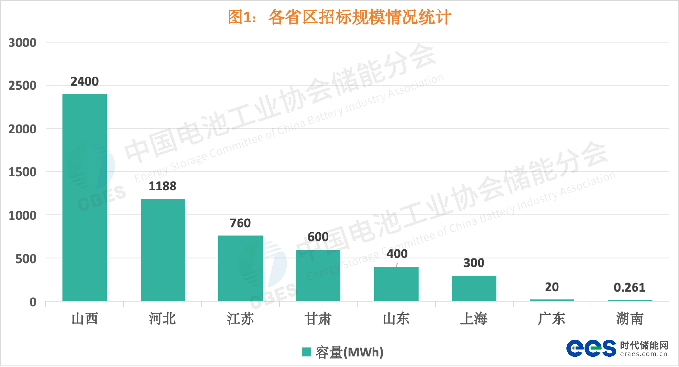 各省区招标规模情况,TOP5分别是:山西2400MWh;河北1188MWh;江苏760MWh;甘肃600MWh;山东400MWh。