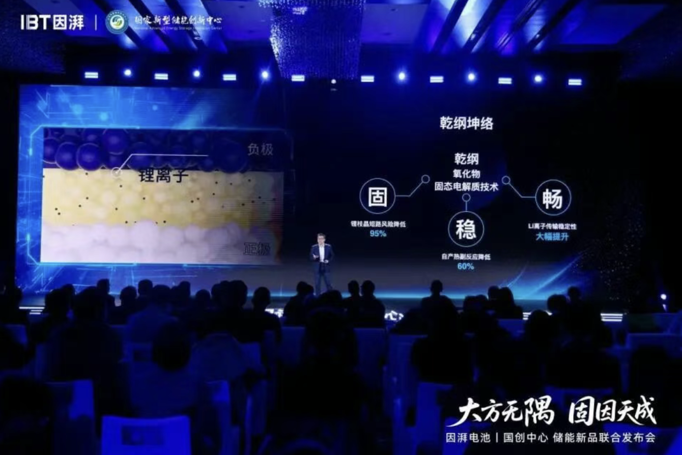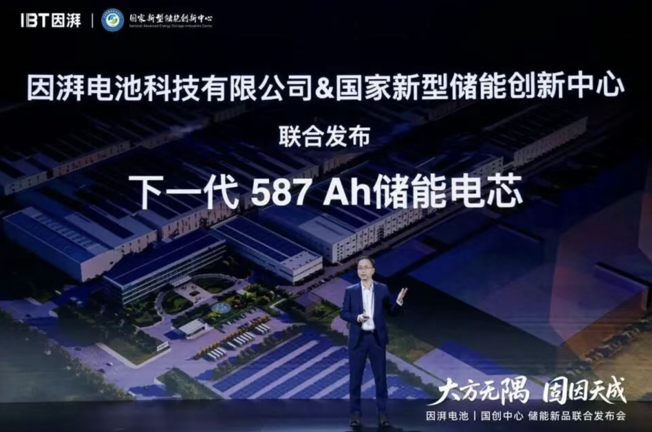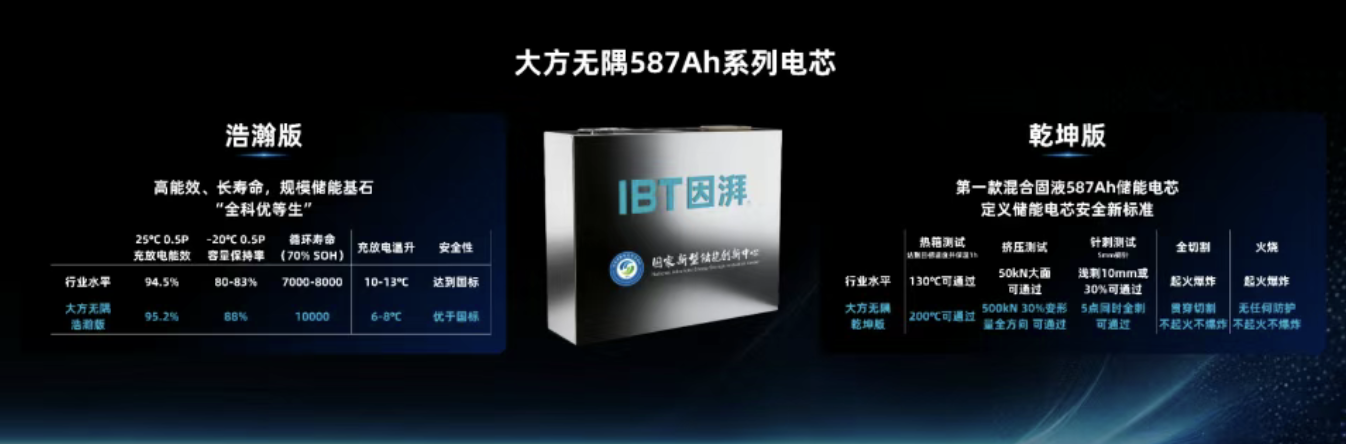在全场瞩目下,因湃正式发布全新 “大方无隅” 系列 587Ah 储能电芯,包含浩瀚版(液态)电芯与乾坤版固液混合(半固态)电芯两款核心产品,以技术突破填补行业高端安全储能产品空白。