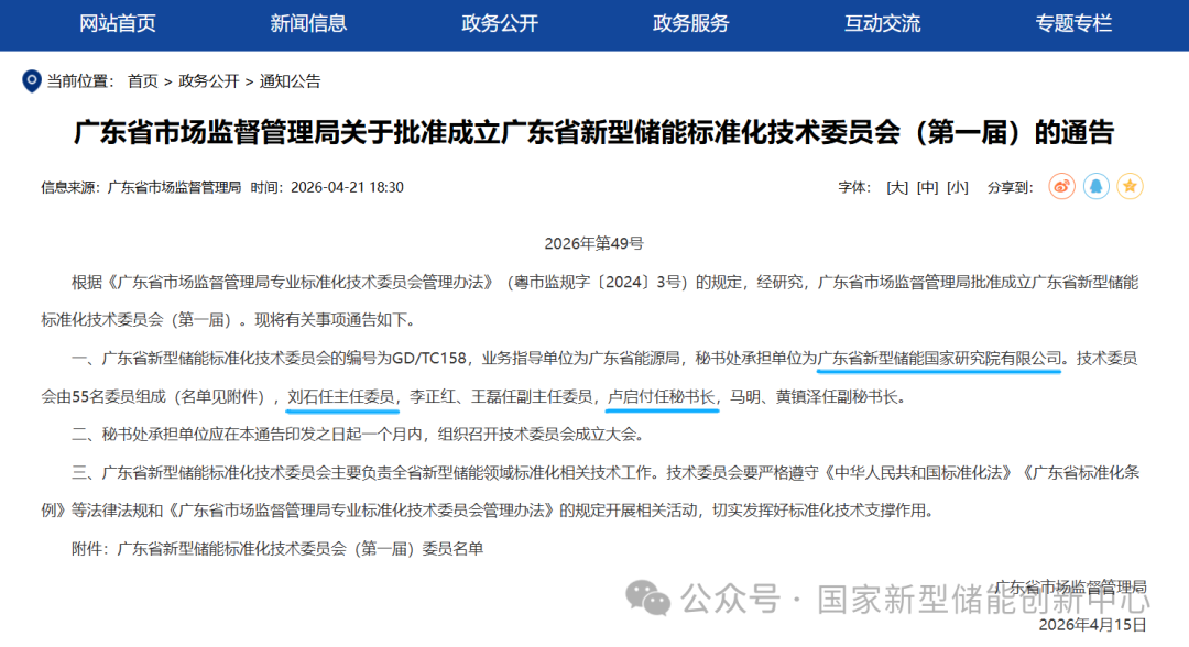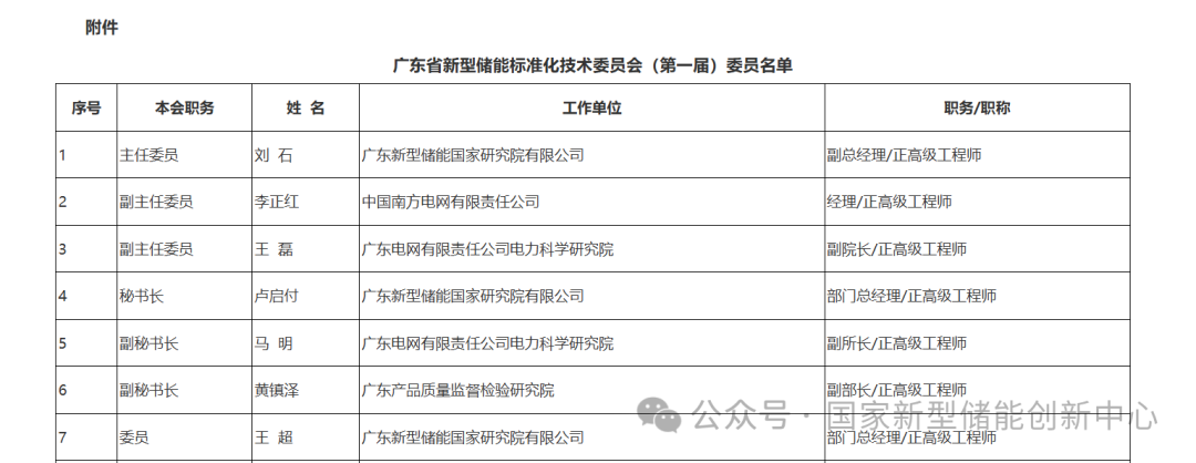广东省新型储能标准化技术委员会(第一届)的通告(图片截取)