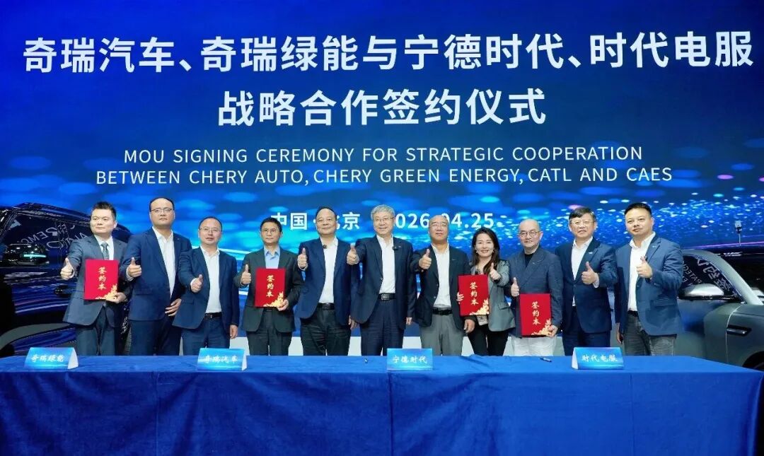 同日,奇瑞汽车、奇瑞绿能也与宁德时代、时代电服达成合作。双方将布局超充 + 换电共享网络,共建绿色能源生态。