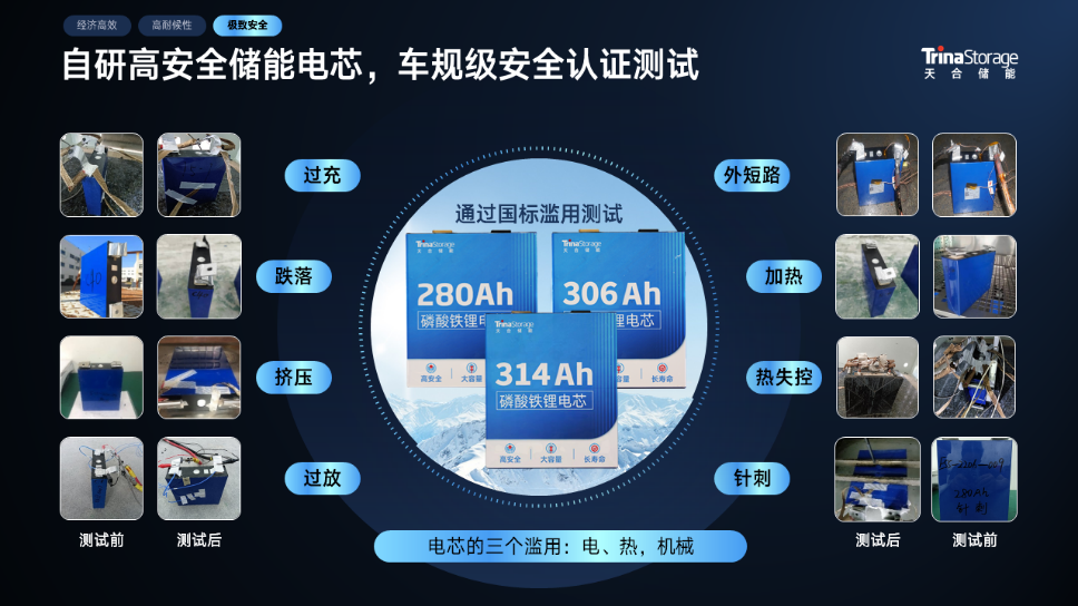 同时天合储能正在积极研发宽温域电芯和无Pack、无空调的储能系统,从电芯本征安全出发,全力护航储能项目落地。天合储能具有充沛的项目落地经验,凭借光储基因优势和“更先进、更可靠、更优质”的储能产品的解决方案,推动大基地新一代光储电站系统落地建设,满足电源侧、电网侧和用户侧等不同应用场景的多样化需求。