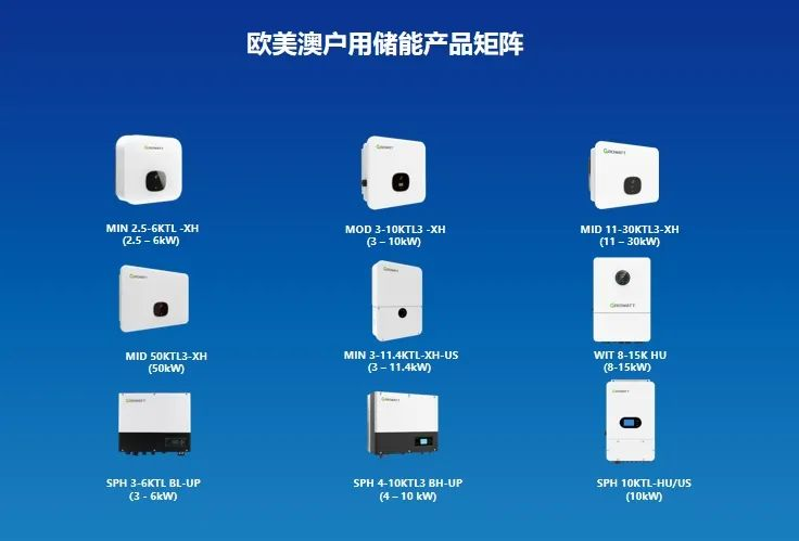 古瑞瓦特储能三驾马车全场景产品矩阵覆盖欧美户储主流市场、亚非拉户储新兴市场、中国工商业及大储市场、以及全球工商业微网储能市场。