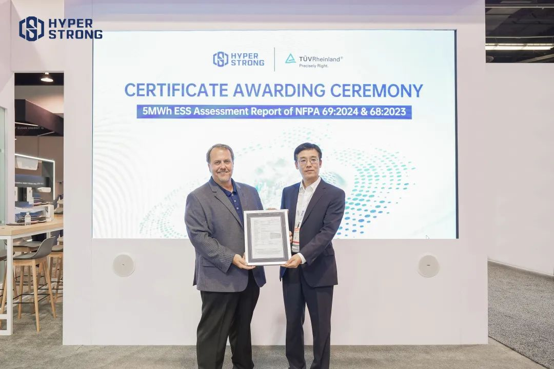 产品认证方面,海博思创5MWh储能系统获得了TÜV莱茵颁发的NFPA 69:2024和68:2023标准评估报告,标志着海博思创产品满足储能行业最高安全和性能标准的又一个重要里程碑。