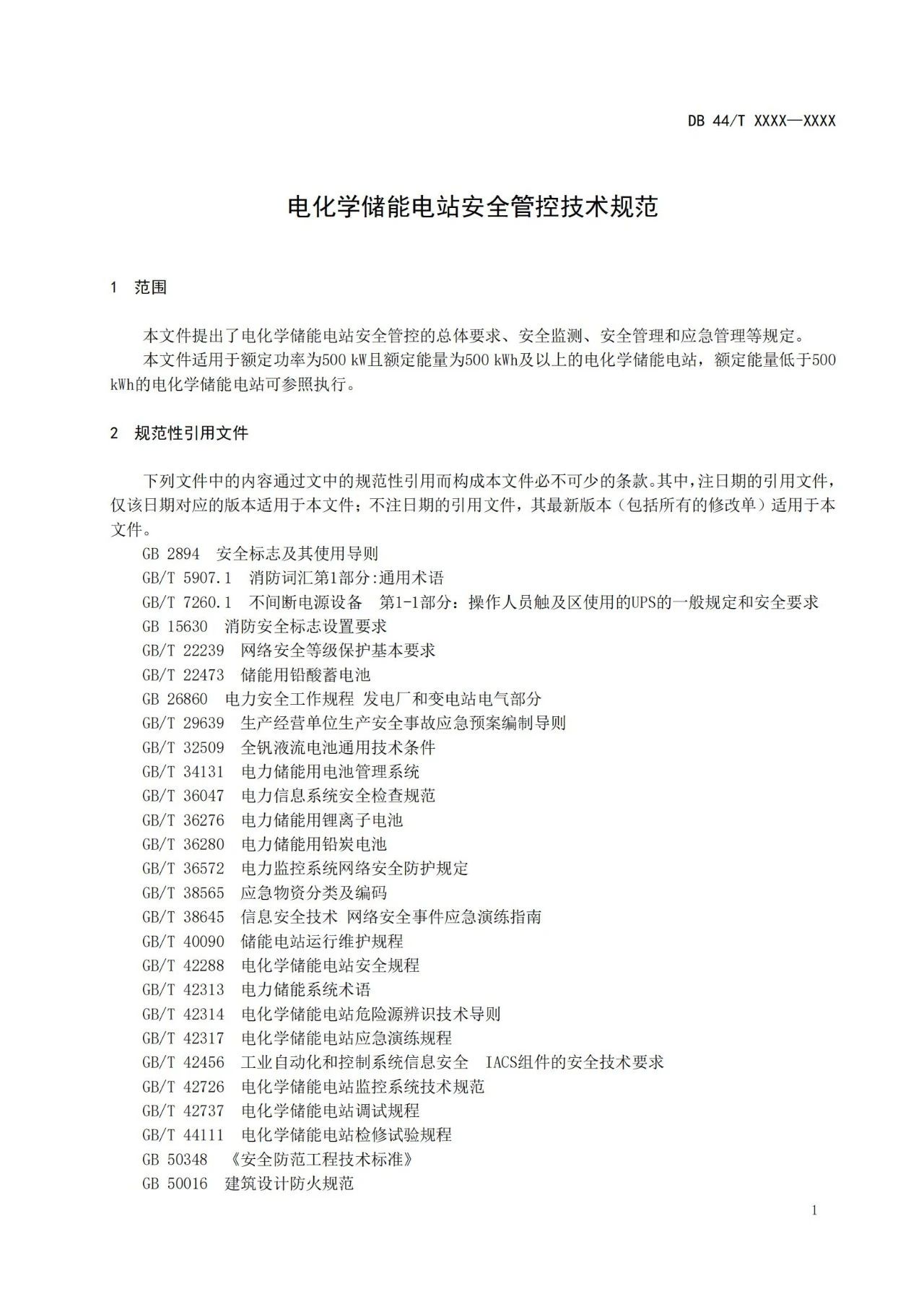 本文件适用于额定功率为500kW且额定能量为500kWh及以上的电化学储能电站,额定能量低于500kWh的电化学储能电站可参照执行。