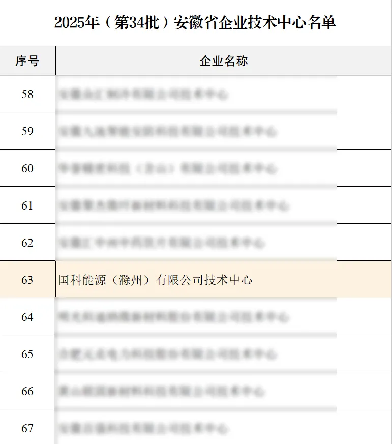 2025年11月20日,安徽省工业和信息化厅正式公布省级企业技术中心名单,国科能源(滁州)有限公司技术中心正式获批认定为“安徽省企业技术中心”。标志着国科能源在电化学储能领域的技术创新能力、研发体系建设和成果转化水平获得省级权威肯定。