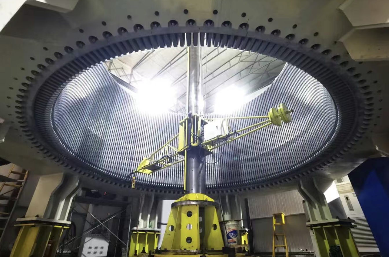 定子铁心作为发电机组的“磁力中枢”,其叠装质量直接关乎机组运行效率与稳定性。项目团队坚持以“毫米级精度”为标准,累计使用10万余张厚度0.5毫米的硅钢片,通过精密叠压、整形与压紧等工艺,最终形成内径5.35米、高2.85米的定子铁心,圆柱度误差控制在0.2毫米以内,整圆波浪度不超过2毫米,精度显著优于厂家设计标准。