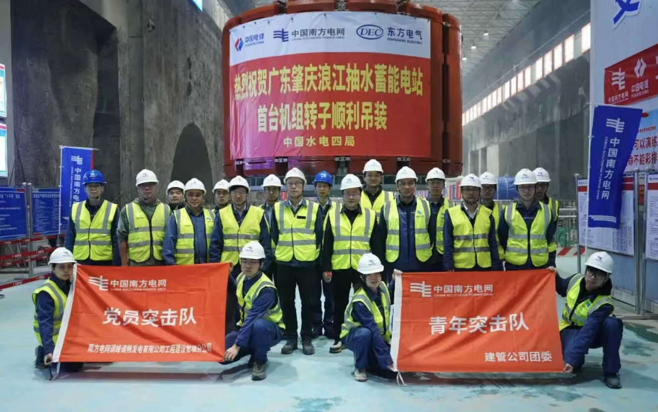 1月20日,随着起重指挥一声哨响,南网储能公司广东肇庆浪江抽水蓄能电站首台机组转子顺利吊装就位,标志着粤港澳大湾区首个变速抽水蓄能工程的首台机组正式进入总装攻坚阶段,为后续投产发电奠定了坚实基础。