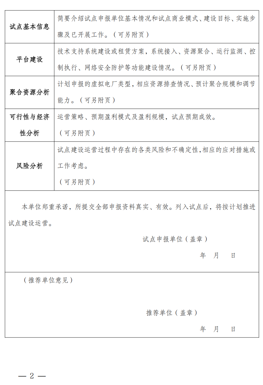 申报主体按照本通知要求,编制试点建设方案并填写试点申报表(详见附件),细化建设目标、资源情况、技术方案、运营模式、实施步骤、预期成效、风险分析等内容,由设区市电力主管部门或电力企业省级公司作为推荐单位并出具推荐意见(1个推荐单位可推荐1个试点),于3月15日前将申报材料(含盖章版和电子版)报送至省能源局。
