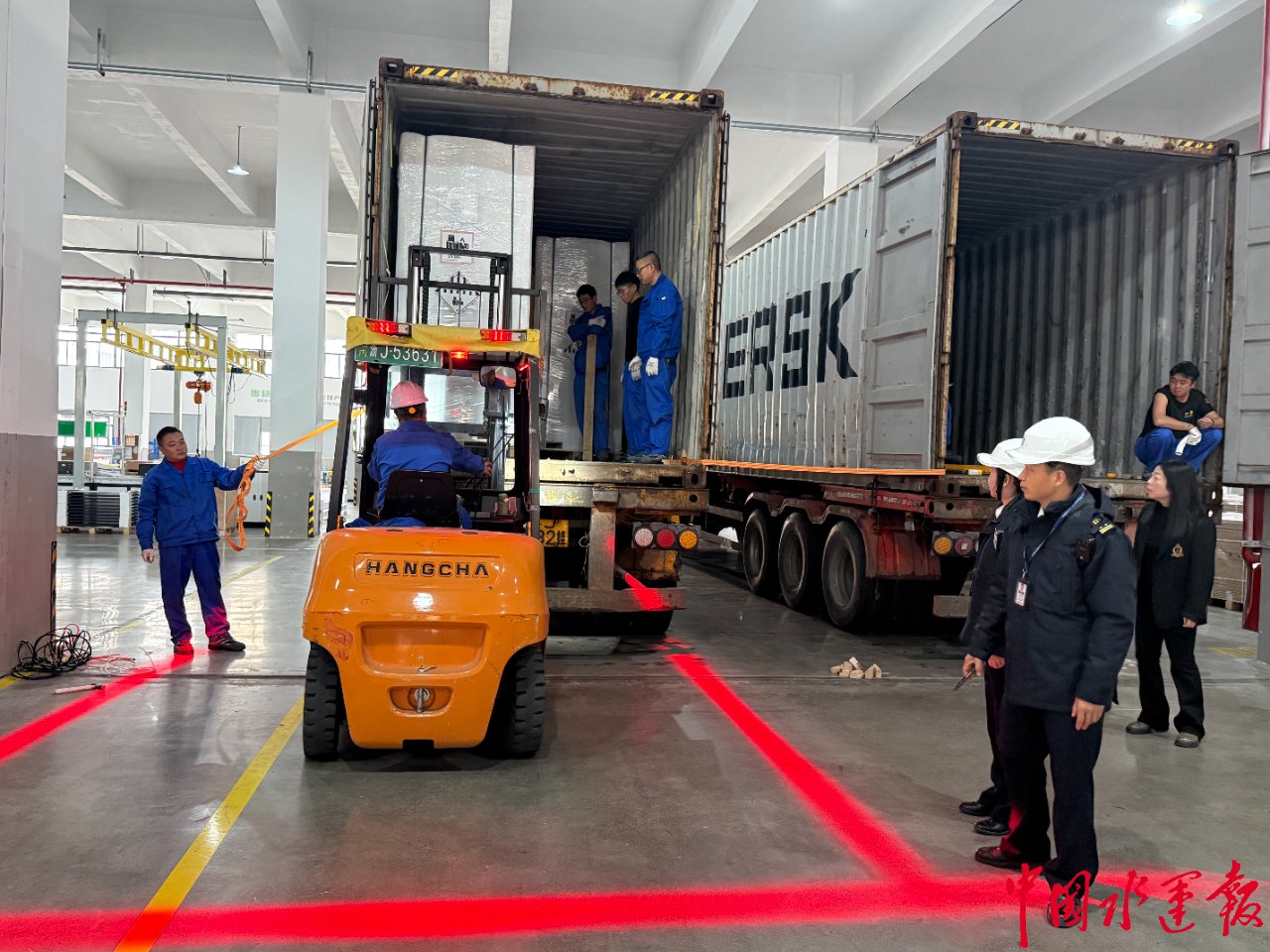 为保障此次台州港首单储能柜顺利出运,台州海事局提前介入、主动服务,紧扣地方产业发展需求,联合市商务局开展专项调研,量身定制服务保障方案。装箱当天,海事执法人员赴企业厂区开展“同装同查”上门服务,现场指导规范装箱操作,同时为企业开展危险货物海运安全宣贯。此外,海事部门还开通危险货物申报绿色通道,实施“即报即审”,依托 VTS、CCTV、无人机等智慧监管手段实现全程动态监控,确保储能柜“不换箱、不开箱、一箱到底”从厂区直达港口、顺利启航。