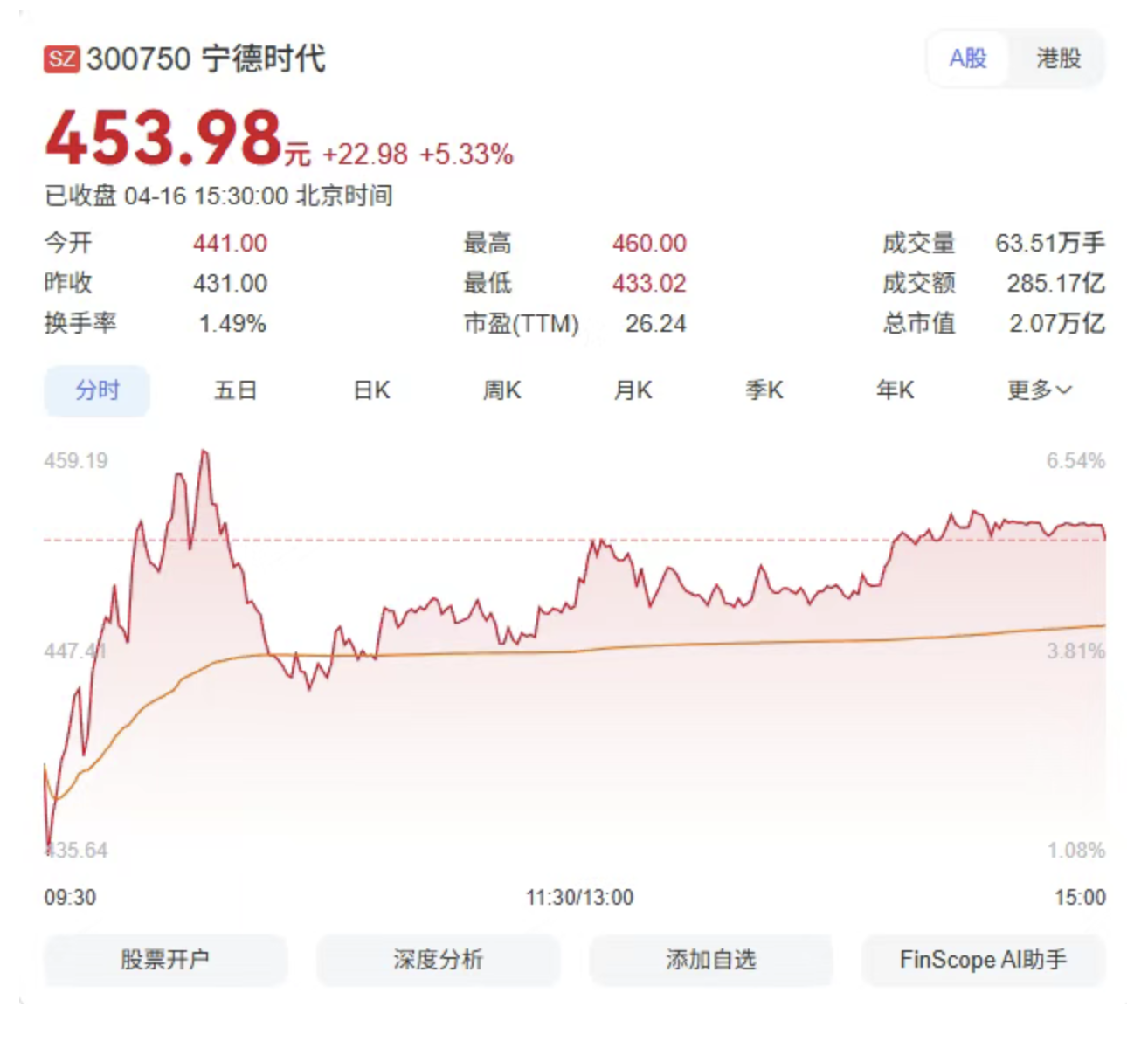 这不是简单的市值排名更替。当收盘钟声响起,宁德时代总市值定格在2.07万亿元,成为A股历史上首只站稳2万亿市值的科技股。盘中一度跃居第二,终因涨幅收窄退居第三。旧能源时代的霸主,在新能源狂潮中退居次席。