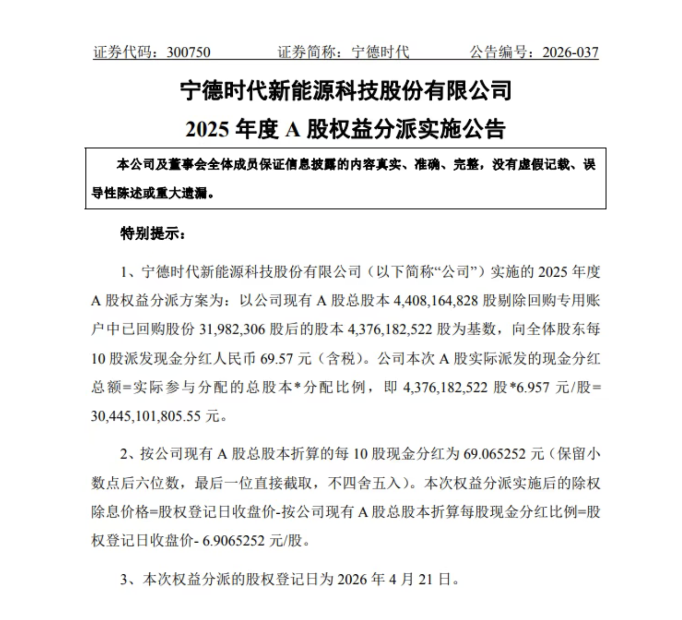 第三乐章是股东回报:每10股派69.57元,总计304.45亿元的分红方案。